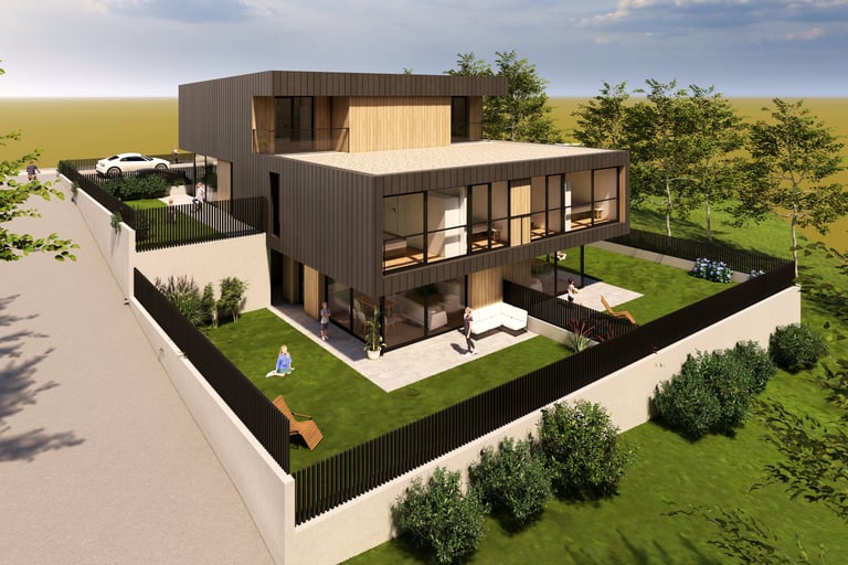 Búsqueda y compra del terreno, desarrollo urbanístico hasta convertirlo en solar, cumpliendo legalidad para construir.